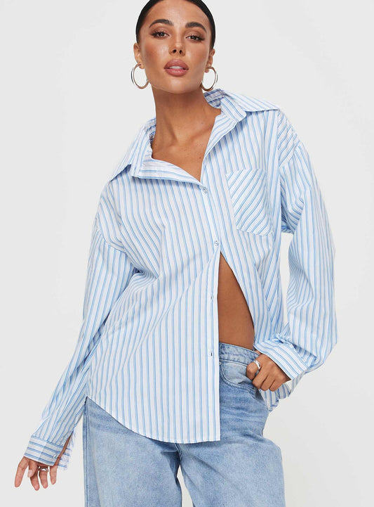 Economize [porcentagem]Shaylan Stripe Shirt Blue